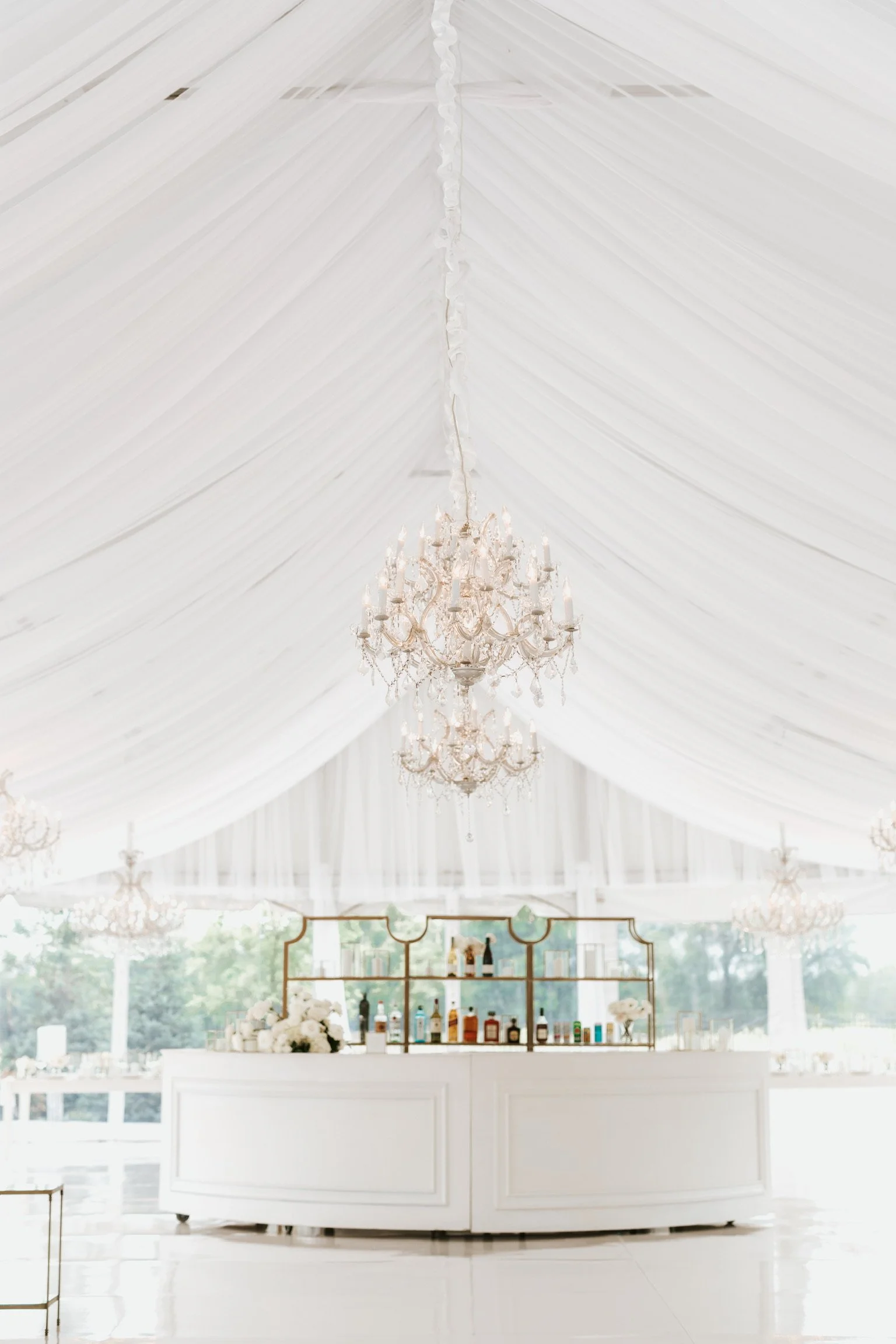 We brought in an incredible team of local vendors and even some talent from Memphis to help us turn this backyard into a dreamy wedding venue. A custom tent was installed with chandeliers, an all-white floral backdrop was created for their poolside ceremony, and we even floated florals in the pool to add that extra touch of romance. The result was a luxurious, intimate affair that felt like it was straight out of a bridal magazine.