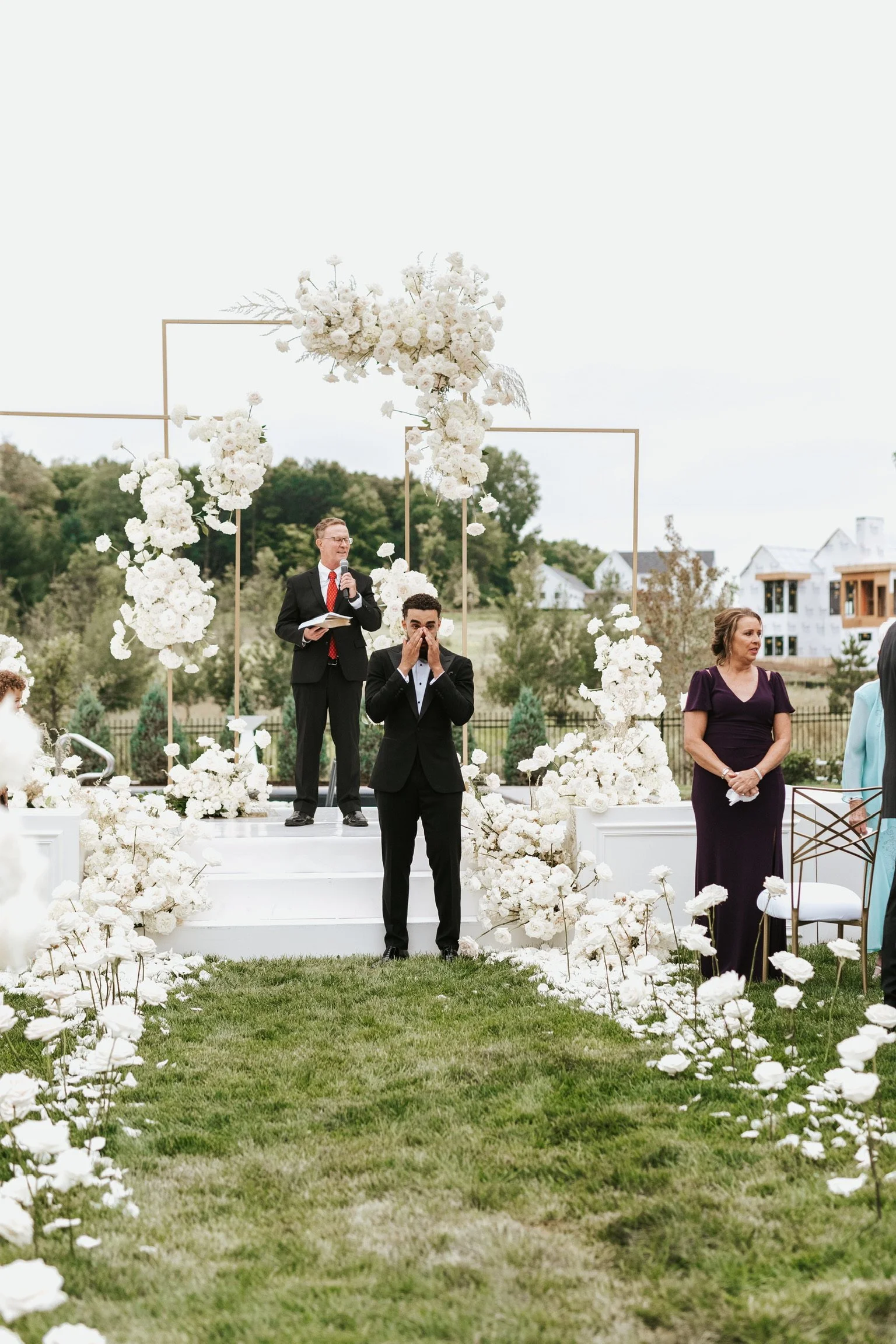I still vividly remember the initial site tour. It was a chilly day, the backyard was unfinished, the pool wasn’t installed yet, and we were facing the challenge of creating a timeless, white-lux wedding aesthetic in a space that was still very much in progress. But we were up for the challenge!